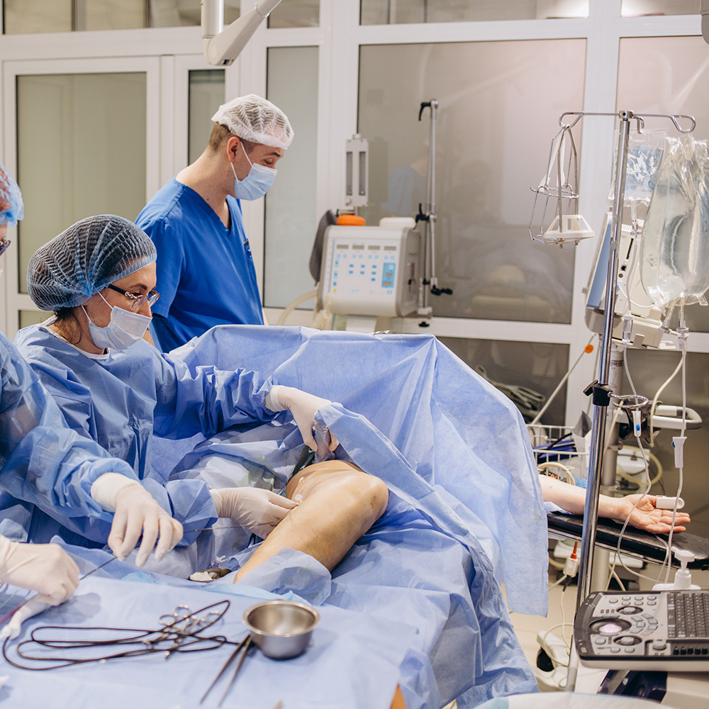 General Anesthesia:Medications administered intravenously and/or inhaled through a mask or breathing tube that induce a controlled state of unconsciousness. This ensures the patient feels no pain, has no awareness, and does not move during surgery.